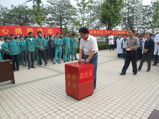2008年5月15日,藥都集團(tuán)全體員工在藥都制藥辦公樓廣場舉行救助災(zāi)區(qū)捐贈(zèng)活動(dòng)。安國市委書記劉穎、市長呂竹青、副市長張彥安、安國市工會(huì)主席畢國群以及民政局、藥業(yè)發(fā)展局、食品藥品監(jiān)督管理局領(lǐng)導(dǎo)參加了捐贈(zèng)儀式。捐贈(zèng)儀式分為兩項(xiàng)內(nèi)容,一是由藥都集團(tuán)向?yàn)?zāi)區(qū)人民捐贈(zèng)救災(zāi)藥品,二是由藥都集團(tuán)全體員工進(jìn)行捐款獻(xiàn)愛心活動(dòng)。